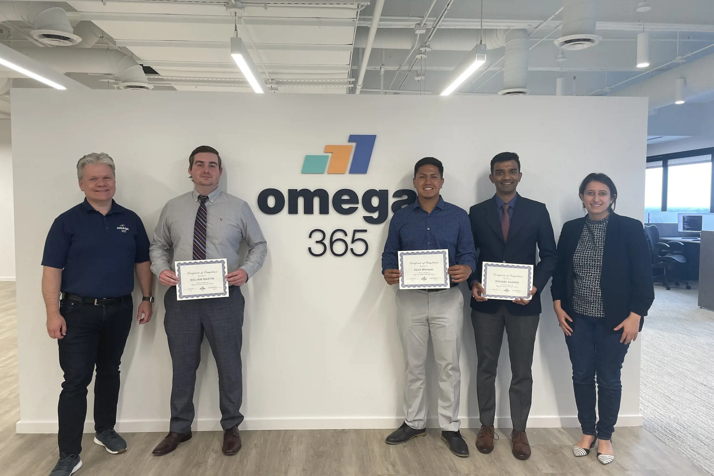 From the left: President of Omega 365 USA, Øyvind Vik, William Martin, Kevin Marquez, Rishabh Sharda, and Department Manager Noura El-Moughny.